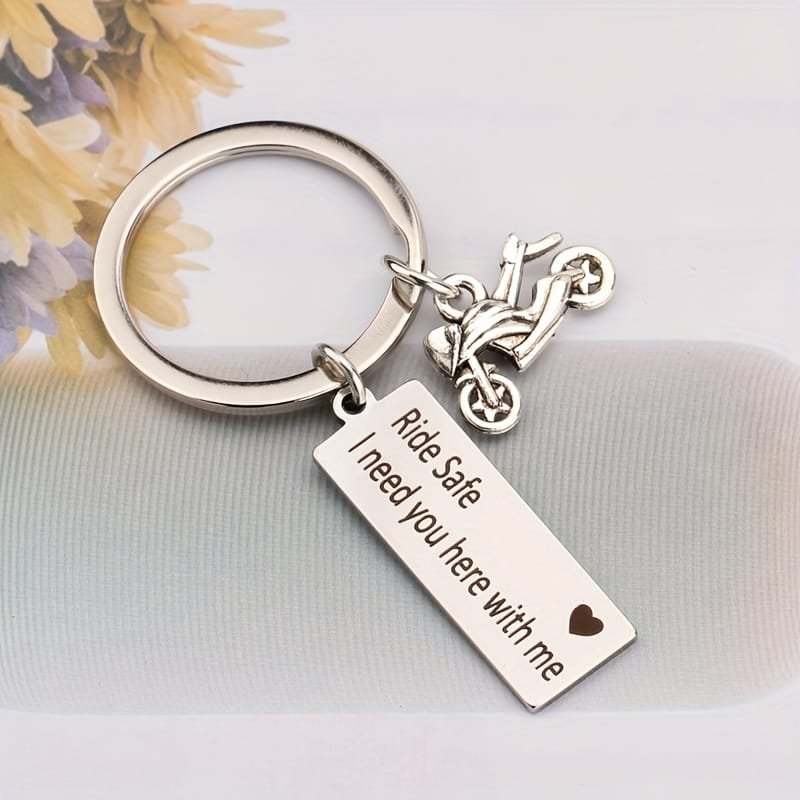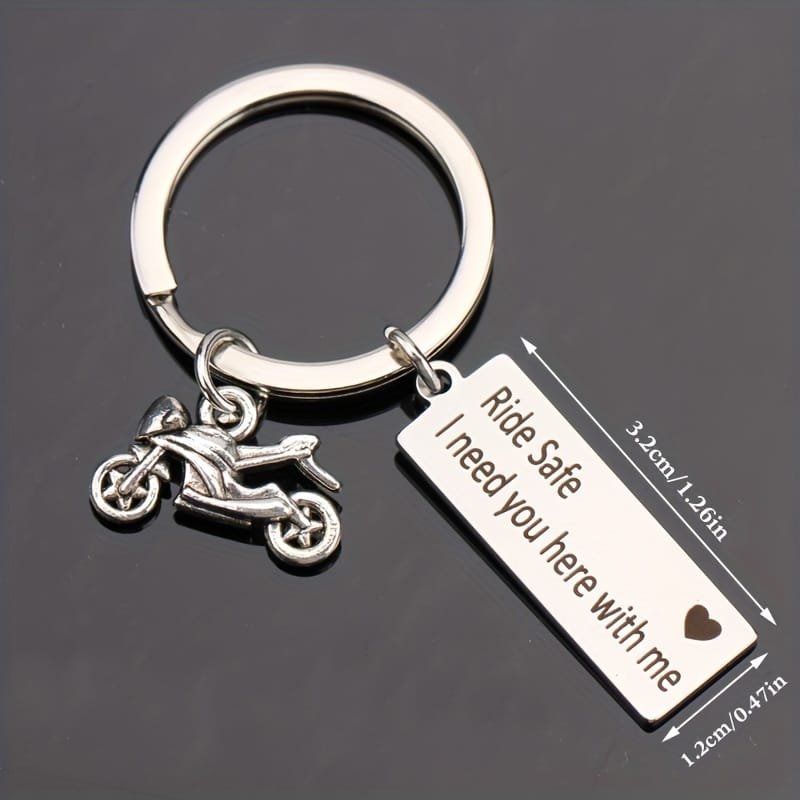 Gravierte Schlüsselanhänger mit der Botschaft „Ride Safe I Need You Here With Me“ (Fahre vorsichtig, ich brauche dich hier bei mir)“