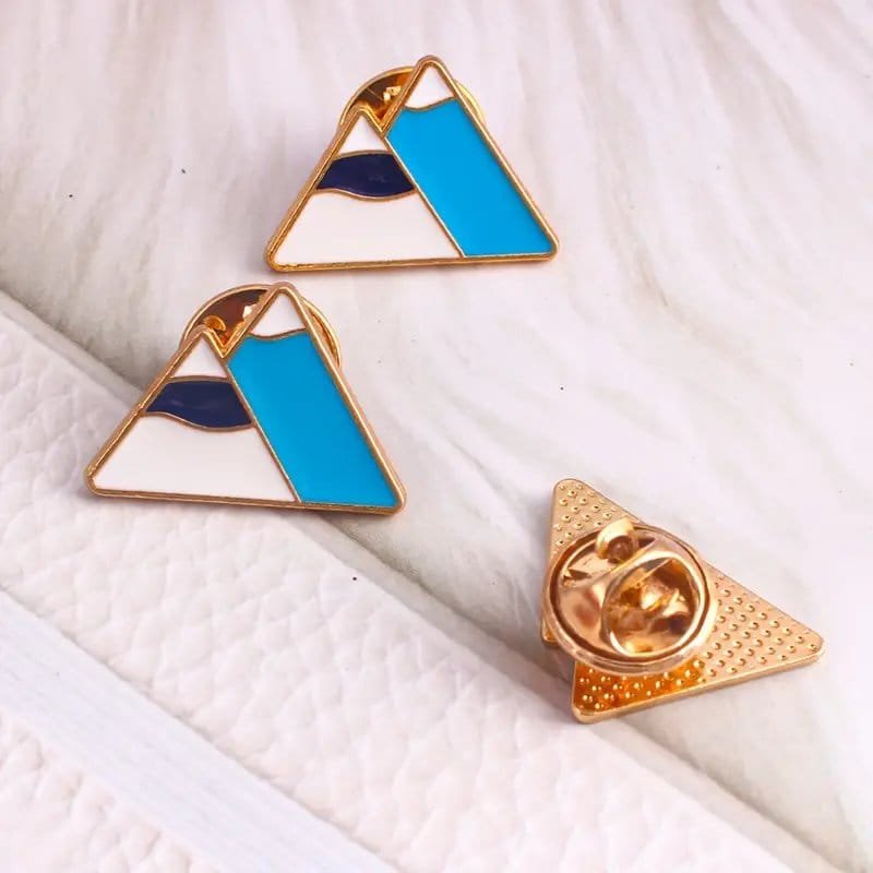 See enamel pin The aesthetic is based on simplicity and geometric shapes. The glossy gold-tone metal frame gives it a modern feel, while the bright colours make it stand out against any background. This mountain pin is incredibly versatile: it adds character to a hiking backpack, a warm fleece jumper or even a classic coat.