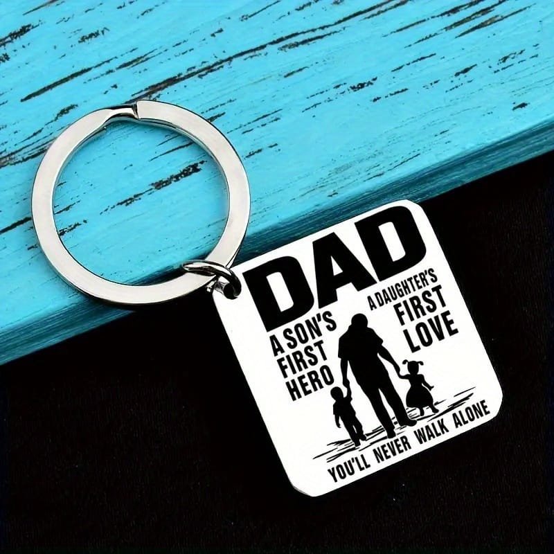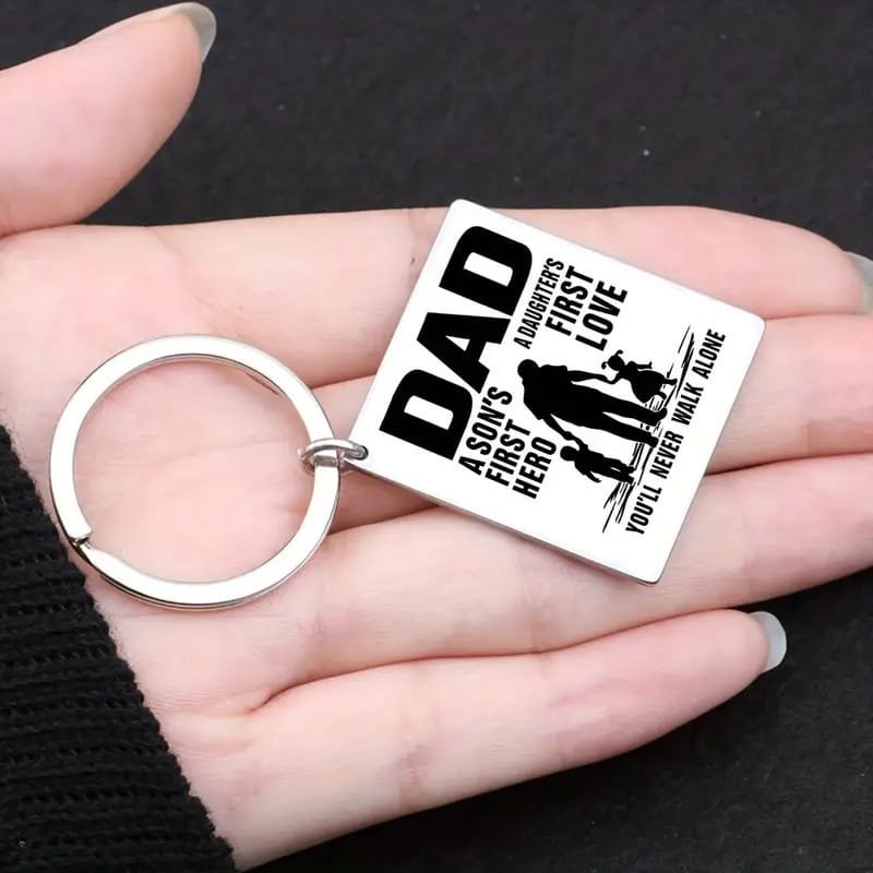 Metalinis pakabukas tėvui – tai sentimentali vertybė kiekvienam vyrui, kuriam svarbus šeimos ryšys. Šis kvadratinis, bet apvalintais kampais pakabukas graviruotas ypatingu piešiniu: tėvas su vaikais. Papildytas prasmingu tekstu „DAD – A Son’s First Hero, a Daughter’s First Love – You’ll Never Walk Alone“, jis tampa ne tik aksesuaru, bet ir emociniu simboliu.