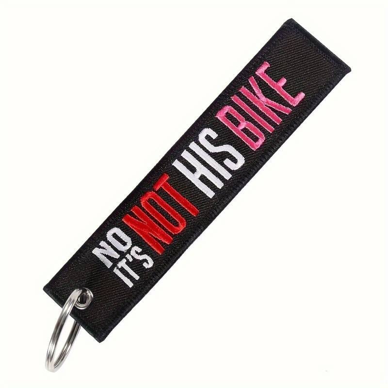 Raktų pakabukas „NO IT’S NOT HIS BIKE” yra originalus ir humoro kupinas aksesuaras. Pagamintas iš juodos medžiagos, jis pasižymi išsiuvėtu tekstu, kurio siūlės yra baltos, raudonos ir rožinės. Tekstas aiškiai skelbia: „NO IT’S NOT HIS BIKE”. Produktas yra sukurtas tiems, kurie vertina unikalumą ir nori išsiskirti. Šis pakabukas tinka automobilių, motociklų bei namų raktams. Jo dizainas suteikia jūsų raktams modernų akcentą, o tvirta konstrukcija užtikrina ilgaamžiškumą net kasdienėje rutinoje. Išsiuvėtas tekstas pabrėžia humoristinį požiūrį, o spalvų kontrastas suteikia aksesuarui dinamiškumo.